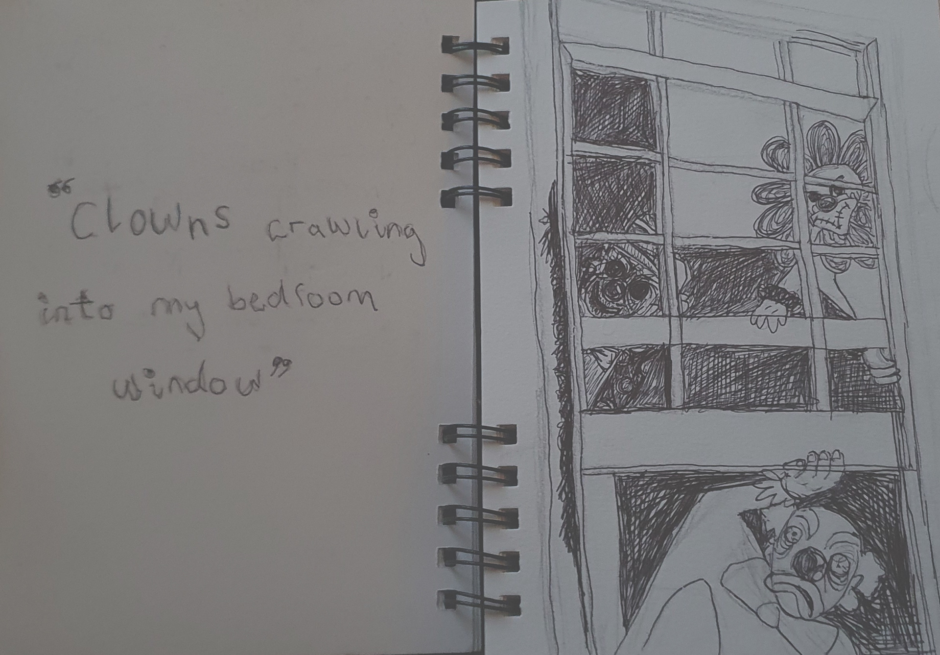 In the early stages of the project, I decided to draw inspiration from others to explore experiences beyond my own, so I asked friends and family to recall their scariest nightmares. I then began sketching these ideas to visualise the concepts, using the process to spark new ideas and creativity.