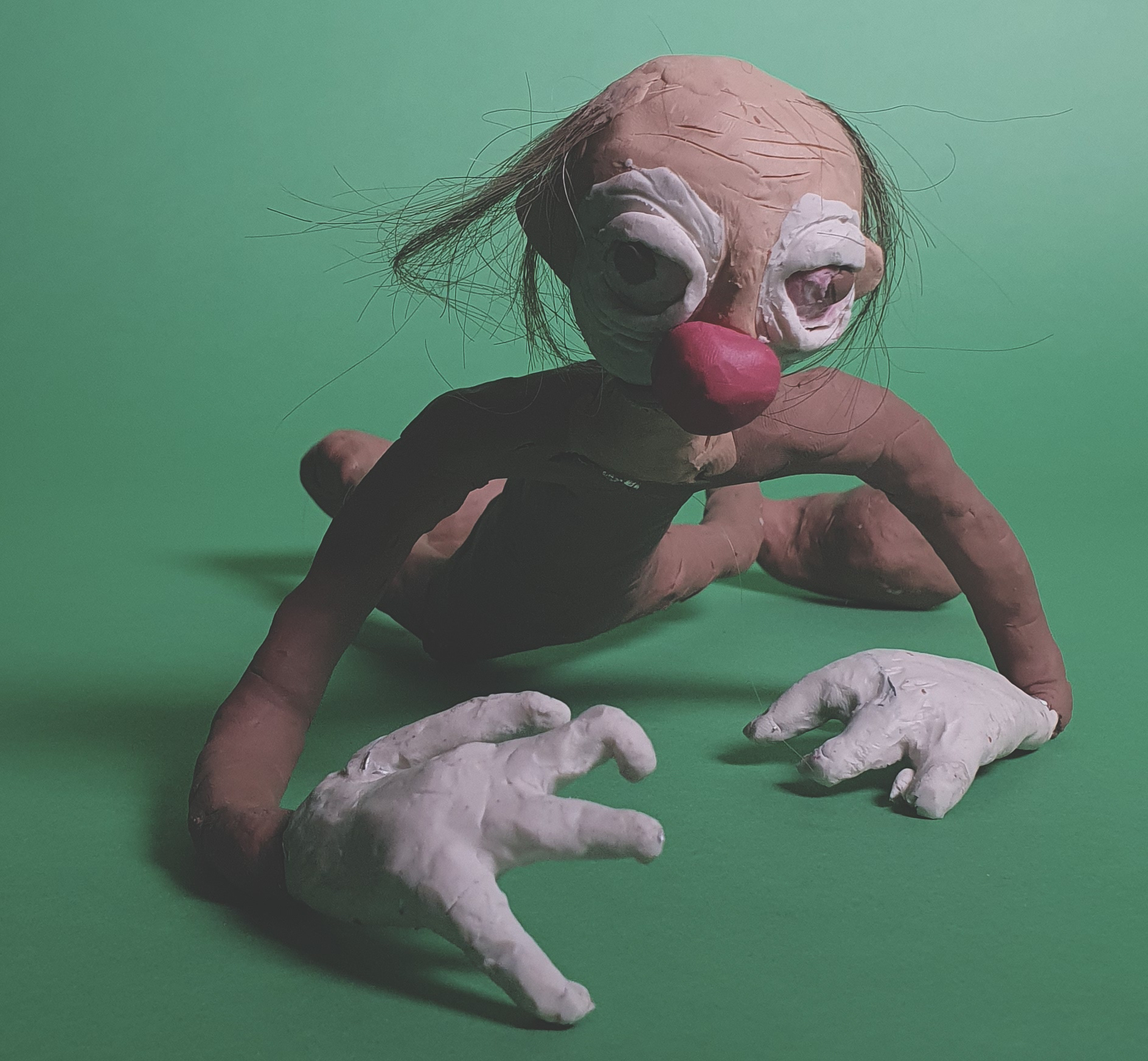 For the characters, I primarily worked with clay, while the sets were built from simple materials such as paper, cardboard, and scraps of fabric and wood. Their designs drew on a mix of inspirations—from TV and film to art and psychological research into dreams—resulting in rough, tactile visuals that reinforced the unsettling atmosphere of the film.