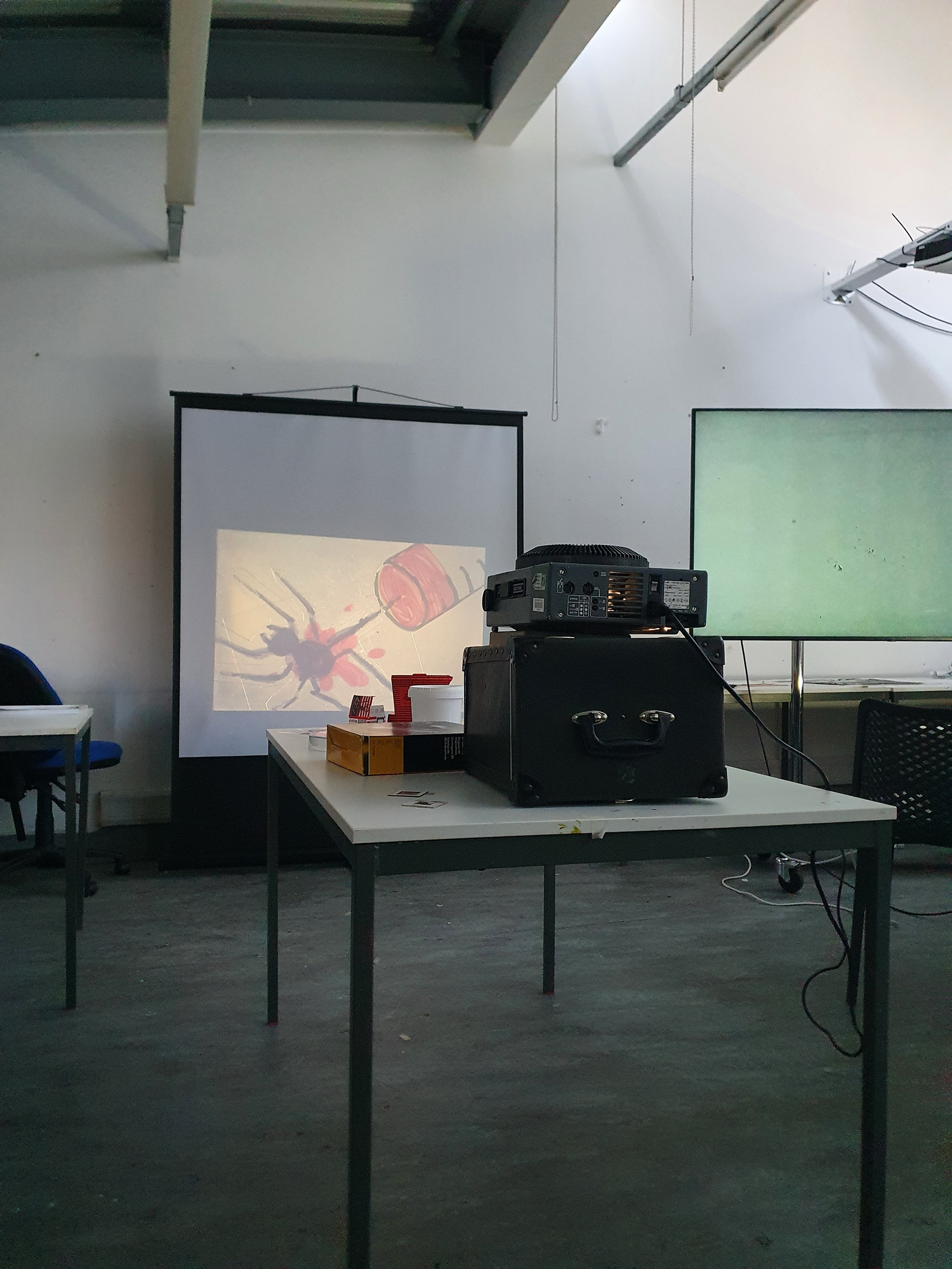 As part of a second-year collaborative project at Cardiff School of Art and Design, I worked in a cross-disciplinary group to create an abstract animation set to a piece of music specially composed for us by Royal Welsh College of Music and Drama graduate, Dan Soley. Each group was assigned a different section of the composition, with the challenge of translating it visually without using any recognisable forms. As the Animator, my role was to take the designs provided by my teammates, bring them to life through animation, and edit the sequence to align seamlessly with the rhythm and dynamics of the music. I also introduced my teammates to stop-motion animation techniques, running sessions in the studio to help them contribute animated elements to the piece. Many of our visual motifs were developed through workshops where we experimented with making marks directly onto reels of film and creating collages for projection slides, which were then incorporated into the final animation. To inform my approach, I researched comparable works such as Mary Ellen Bute’s Tarantella, which explores the interplay of colour and shape in response to sound. This project not only strengthened my technical skills in animation and editing, but also gave me valuable experience in teaching, experimentation, and cross-disciplinary collaboration.